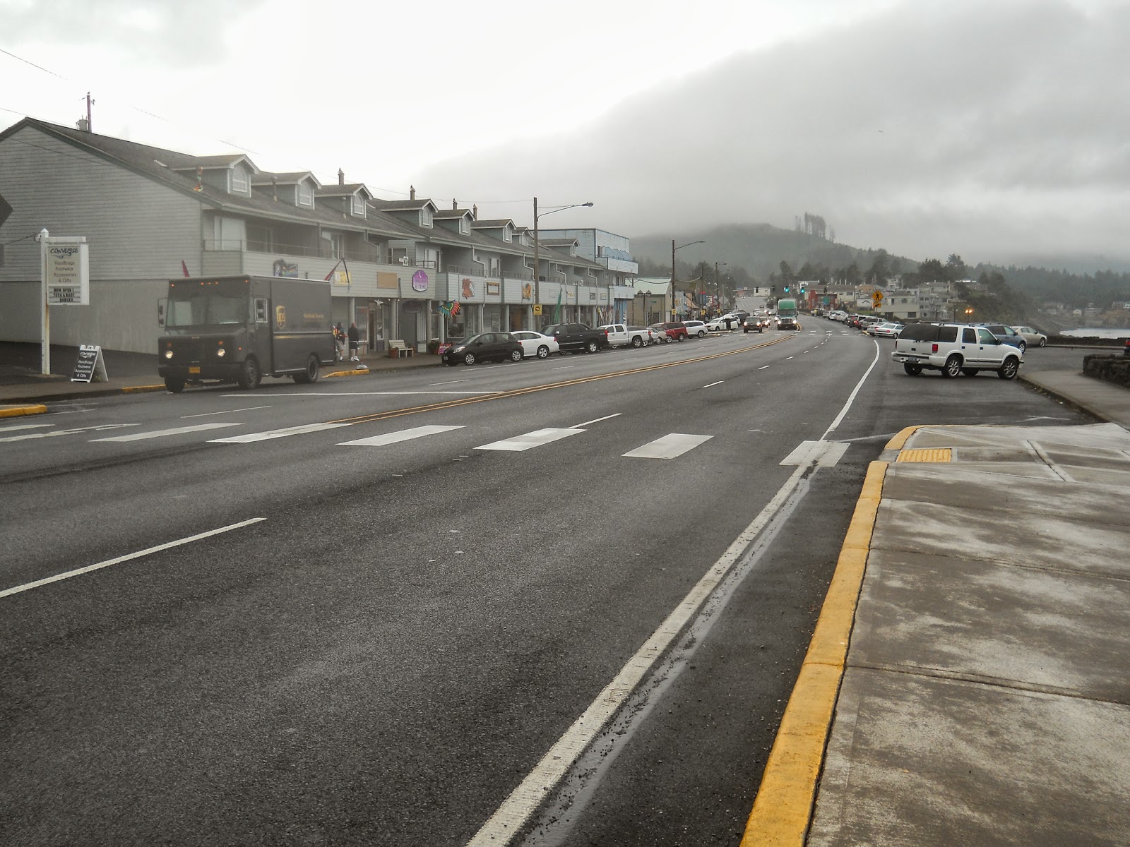 Downtown - The main drag downtown (where all the restaurants and shops are) is along the waterfront on the east side of Hwy 101. See pictures below.